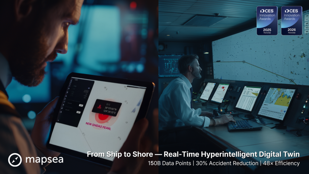 The award recognizes Mapsea’s global maritime big data and AI-powered digital twin navigation technology as a breakthrough B2B solution that simultaneously enhances safety, environmental sustainability, and operational efficiency across the maritime industry. Mapsea’s CES 2026 award-winning technology combines RTK (Real-Time Kinematic positioning) and HFD (High Frequency Data) capabilities to integrate and process 150 billion data points from over 2.6 million vessels worldwide, delivering real-time analysis of vessel positions, routes, weather patterns, ocean currents, engine performance, and fuel consumption across global waters.